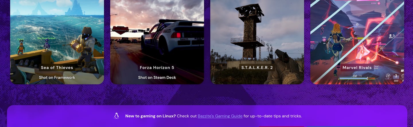 Bazzite is designed for Linux newcomers and enthusiasts alike with Steam pre-installed, HDR & VRR support, improved CPU schedulers for responsive gameplay, and numerous community-developed tools and tweaks to streamline your gaming and streaming experience.